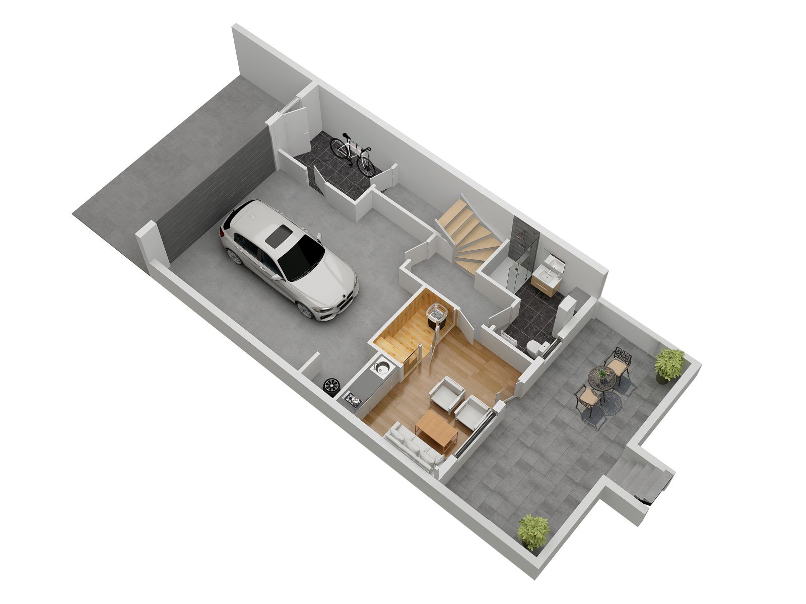jako pracovna, posilovna či dílna. Z tohoto podlaží lze vyjít na zahradu