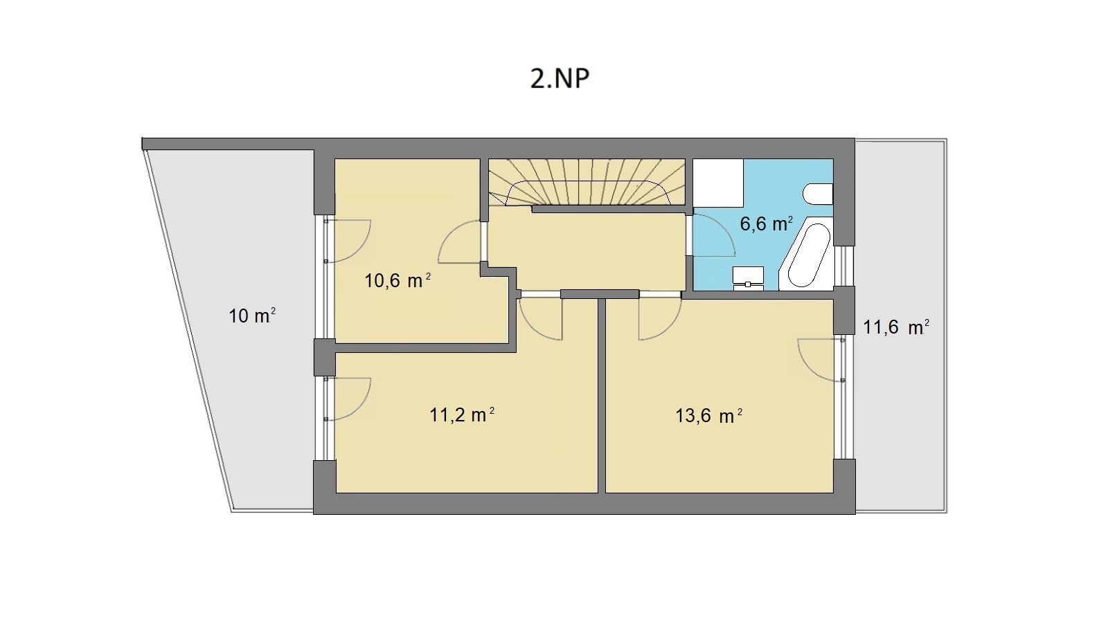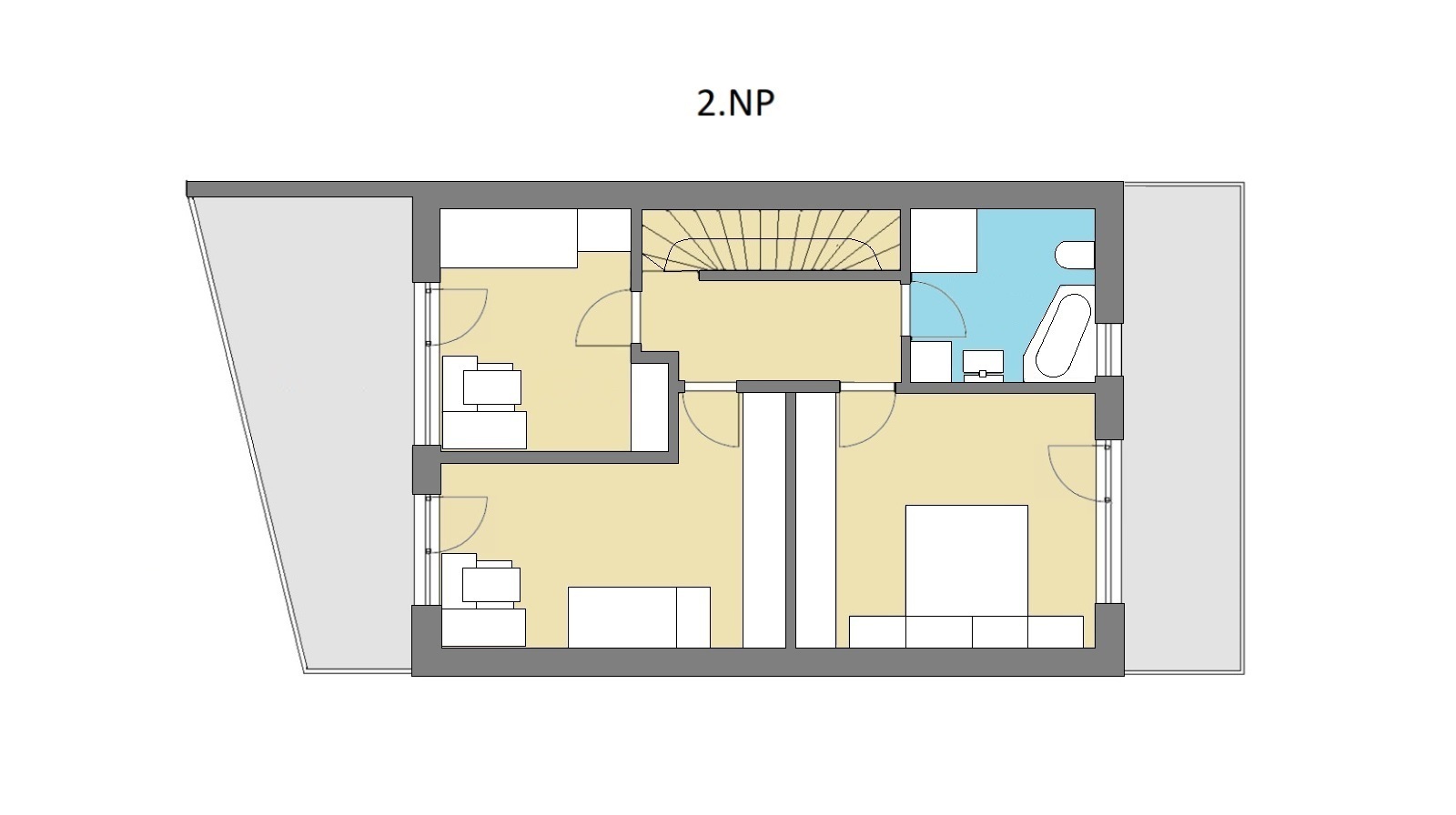 2. nadzemní podlaží tvoří klidovou zónu s ložnicí se samostatným