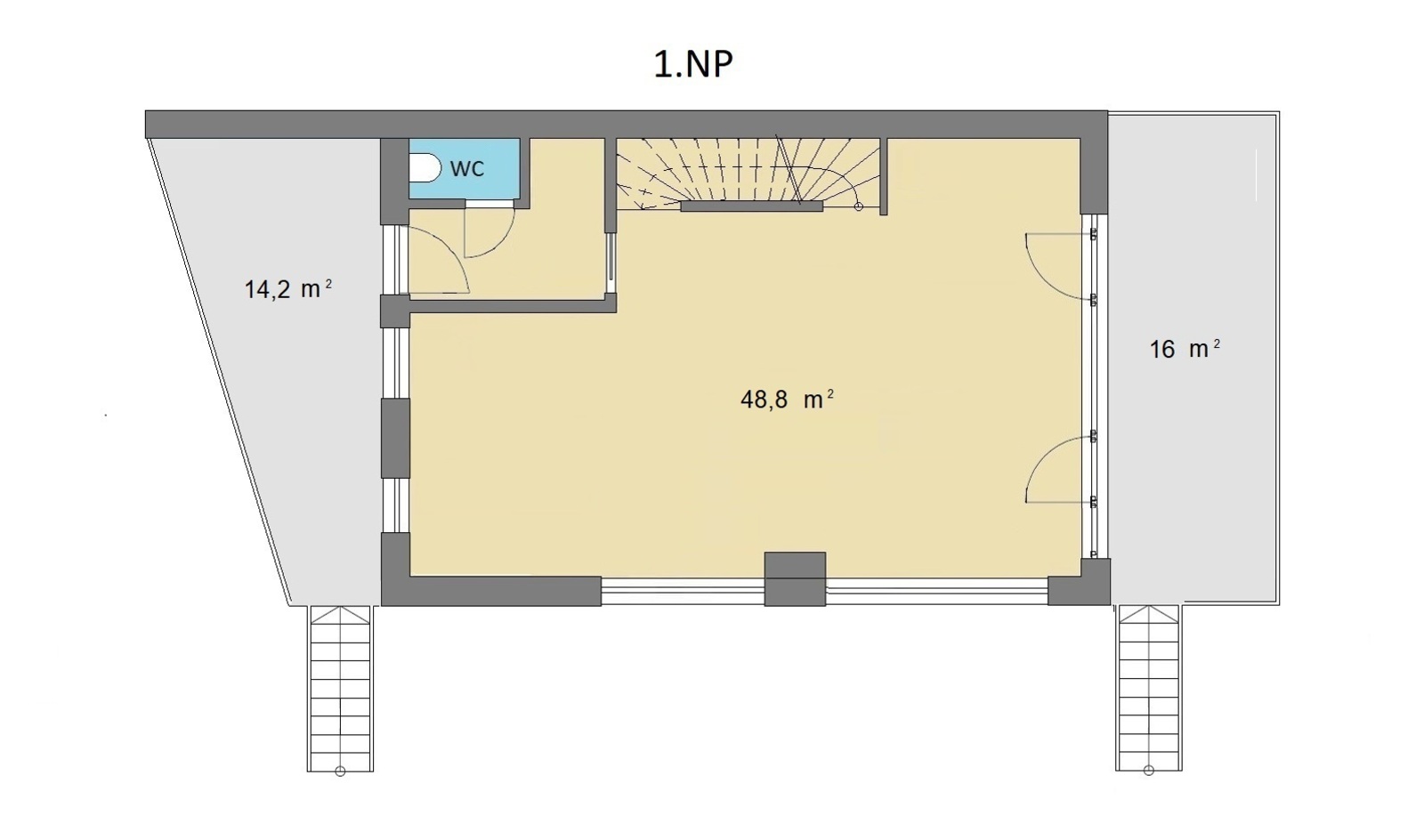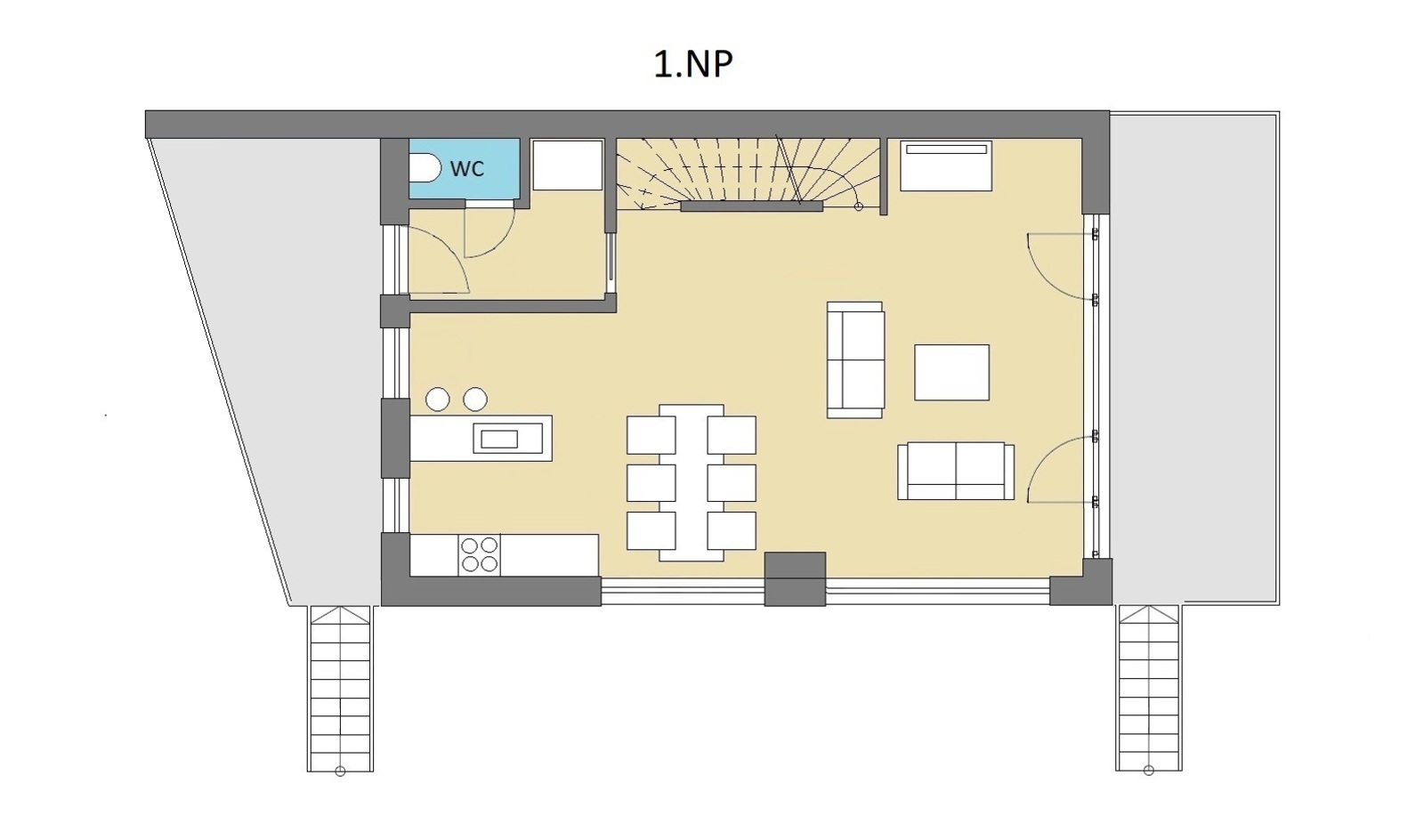 1. PP (částečně zapuštěné do terénu):