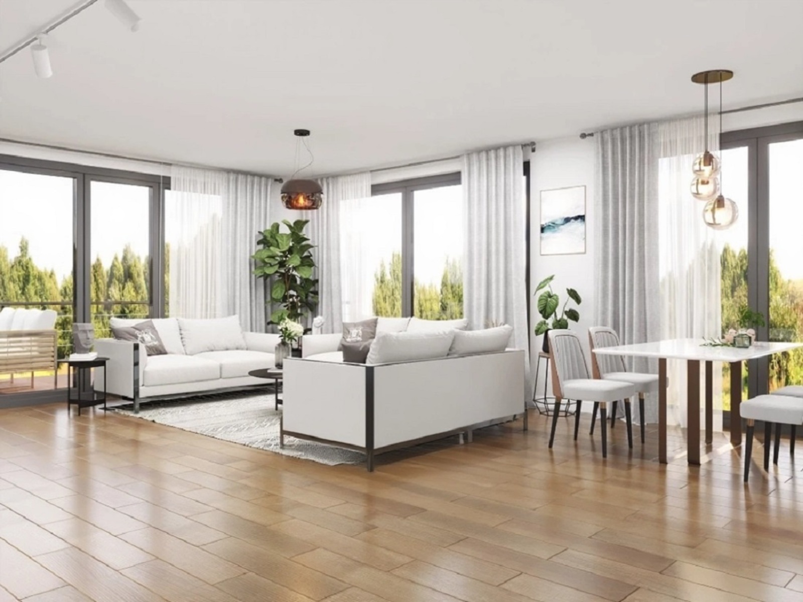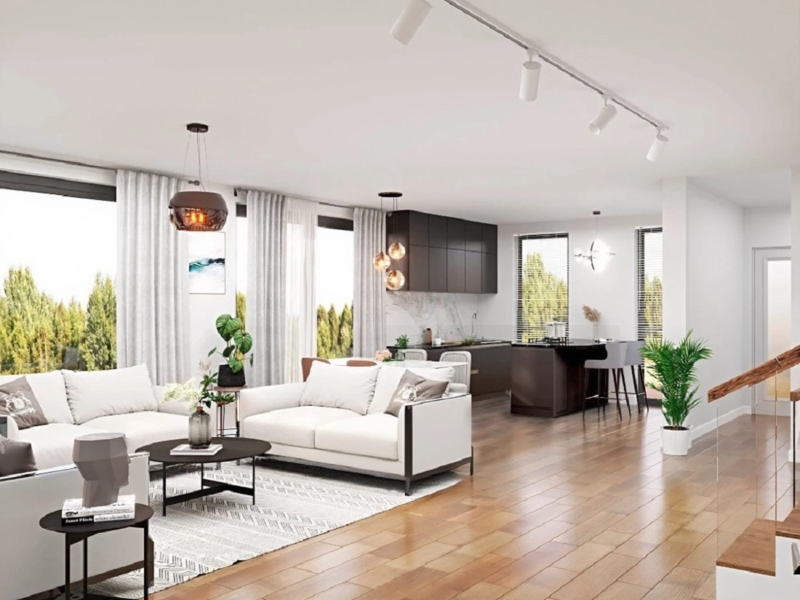 s velkými okny a prostorem pro kuchyň a jídelní kout o výměře