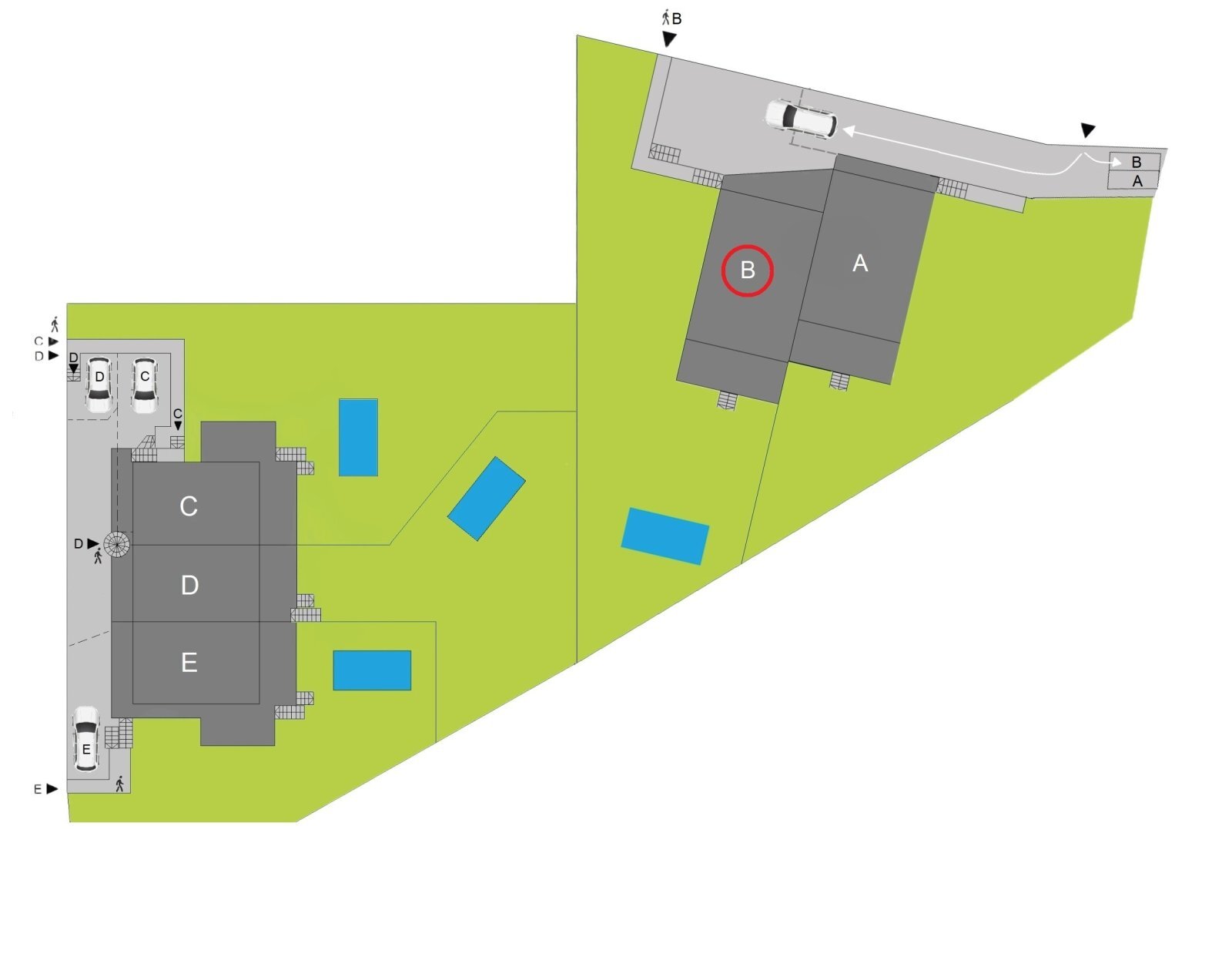 garáž pro 2 auta (28,7 m²), 1 venkovní parkovací místo a soukromou