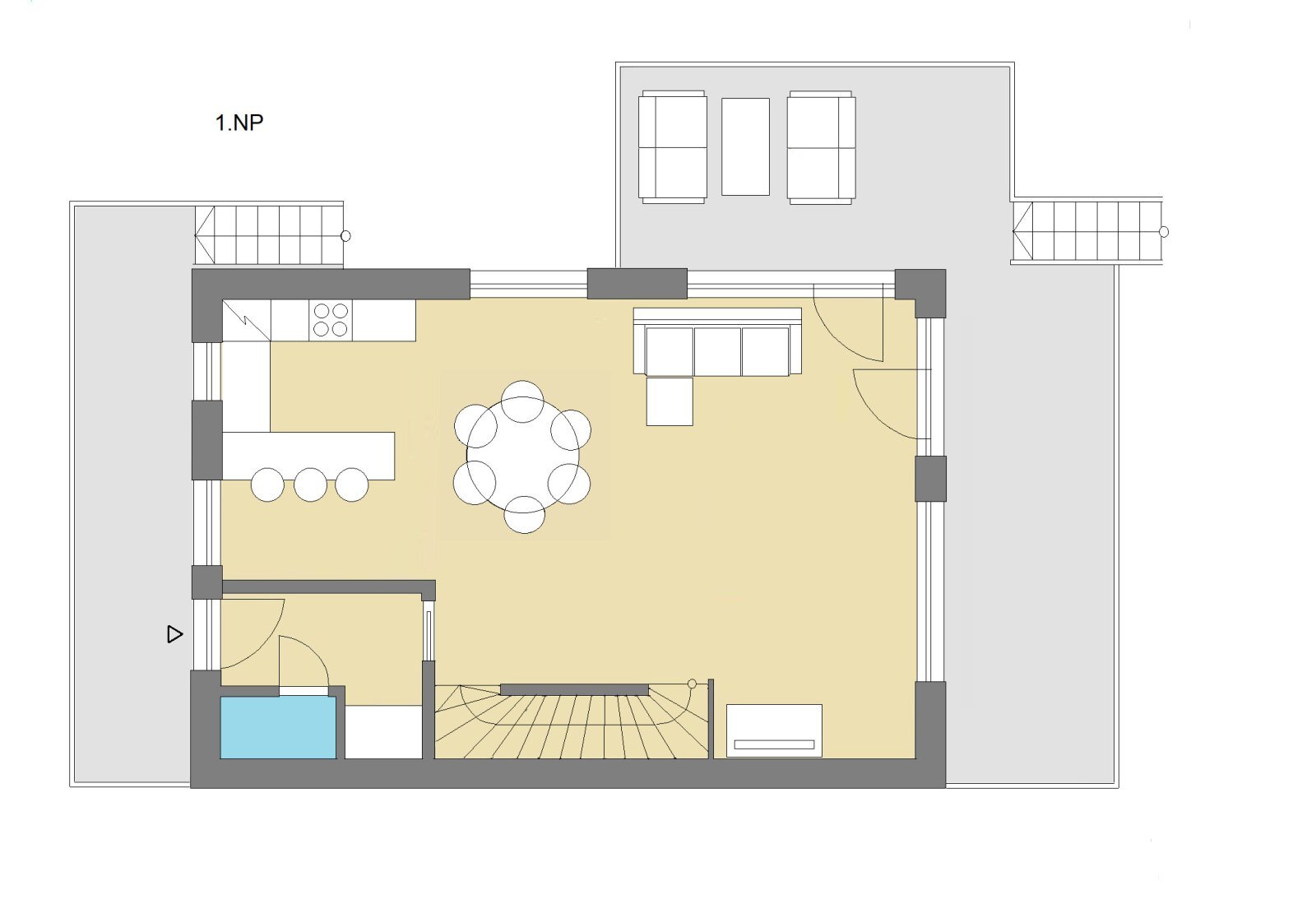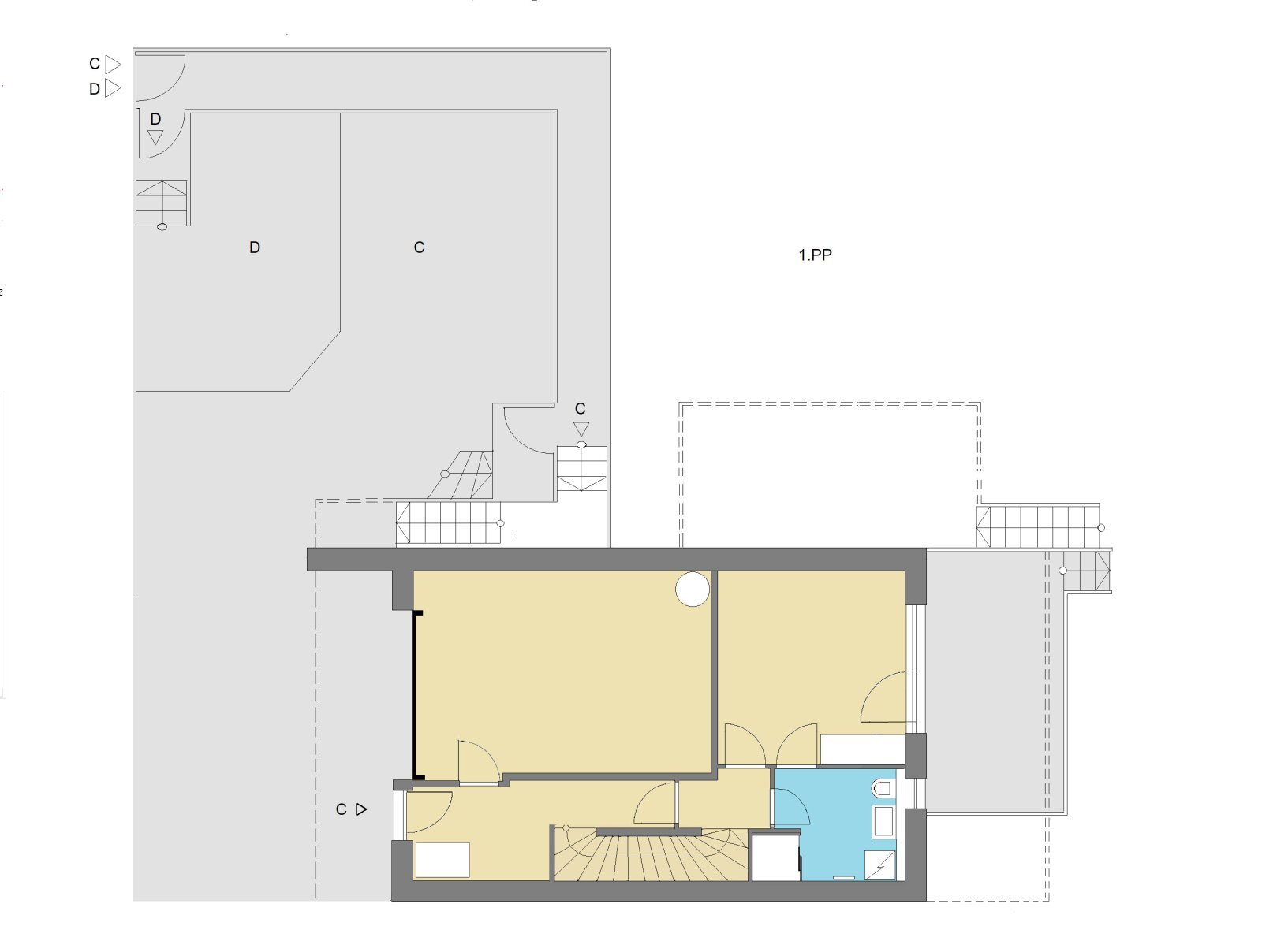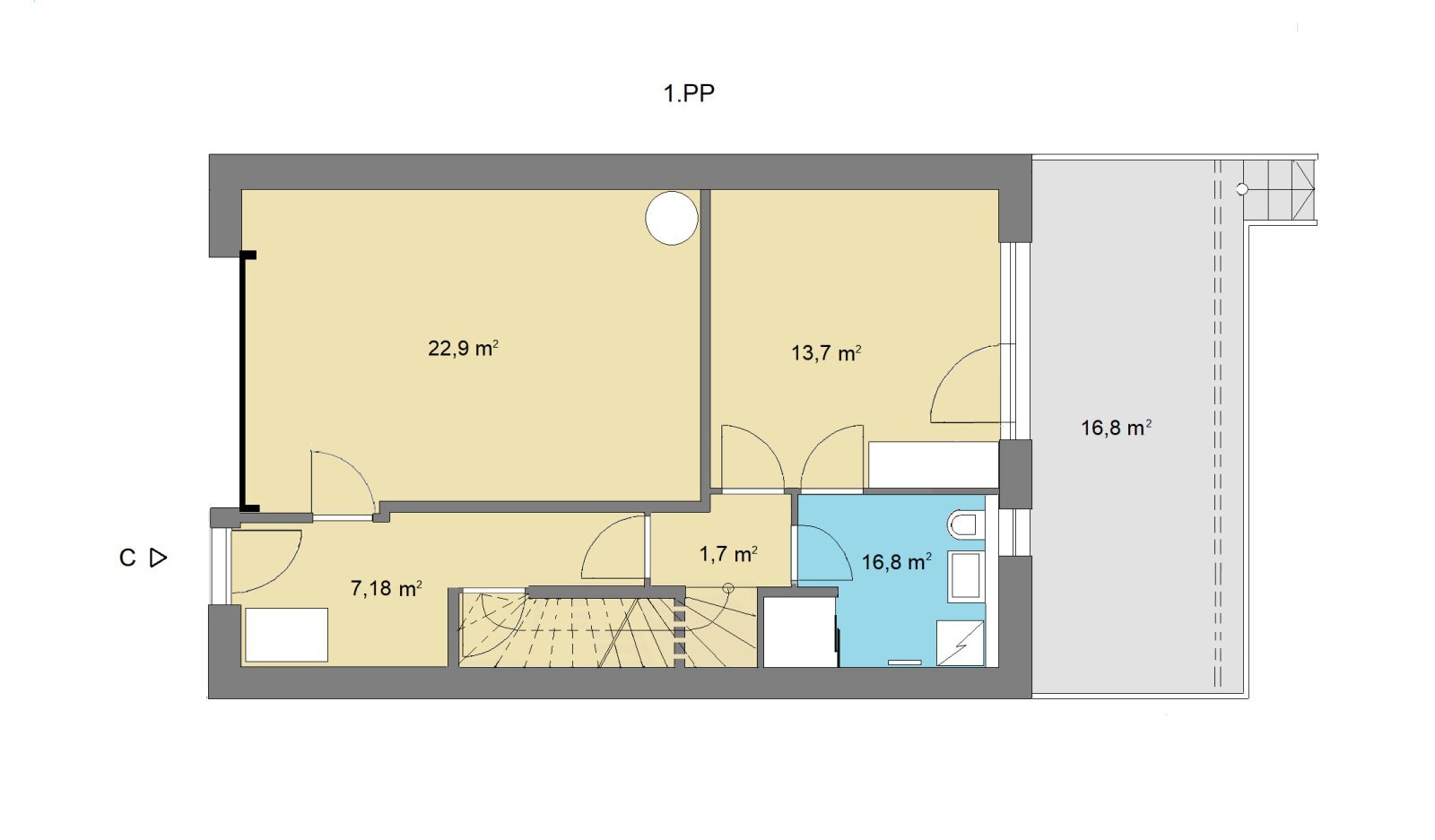 1. PP (částečně zapuštěné do terénu):
