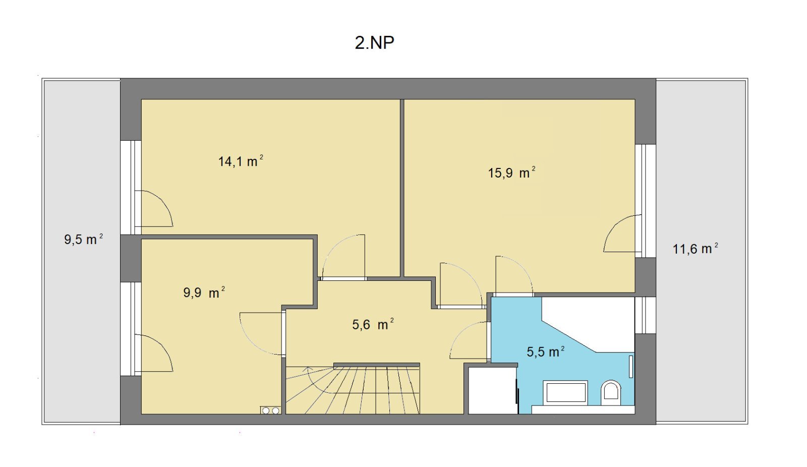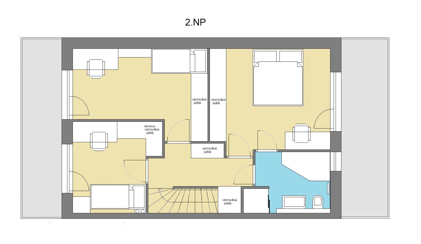 2. nadzemní podlaží tvoří klidovou zónu s ložnicí se samostatným